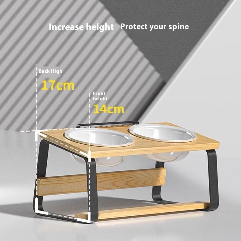 Product information: Specifications: ceramic double bowl (including wooden frame), ceramic double bowl (including wooden frame placemat), Geometric hexagonal double bowl (ABS material), ceramic single Bowl (including wooden frame), ceramic double Bowl plus-sized size (including wooden frame) Material: Wooden Applicable object: Cat Category: Pet tableware