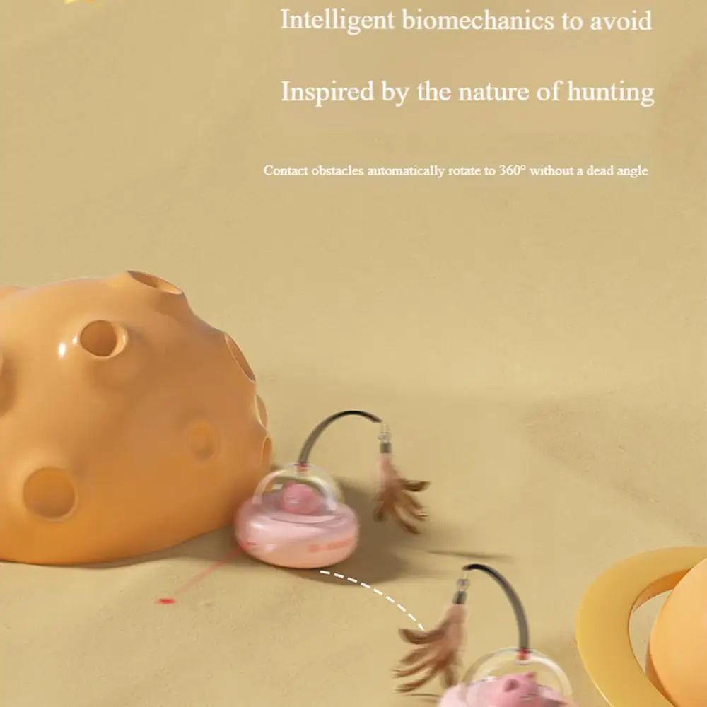 3.Novelty Excitement: Boasting a beautiful shape and featuring a 360 red light beam, our Electric Interactive Cat Toy provides a novel and exciting play experience for felines. Soft, comfortable feathers are also randomly placed for added fun